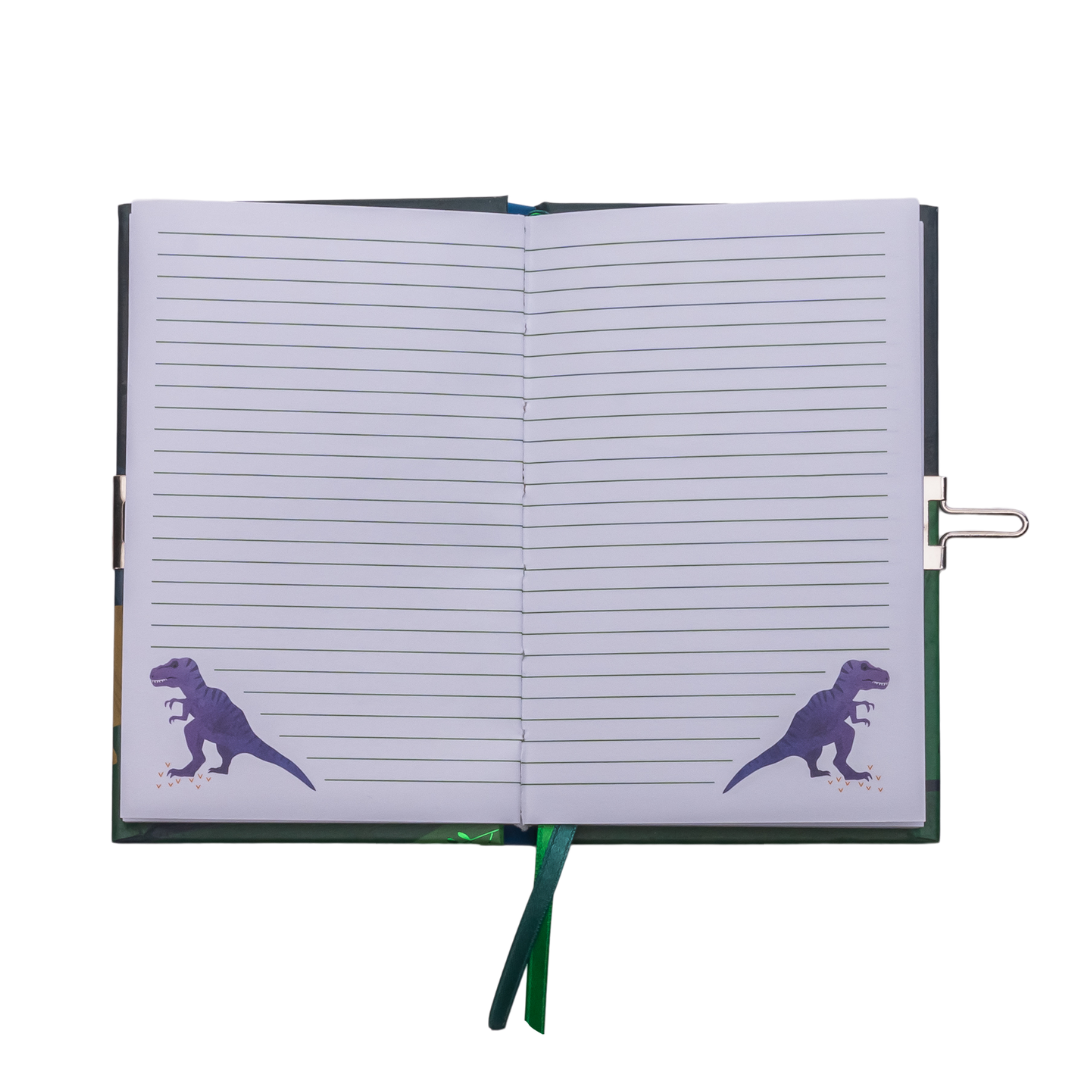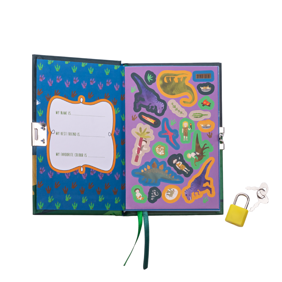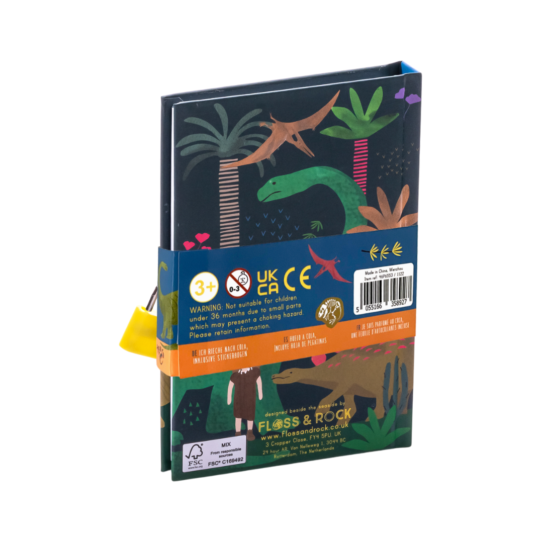 Wow…a SCENTED and SECRET diary. This Dinosaur themed secret diary smells of Cola. Simply scratch the cover and you will reveal the scent. Includes a padlock and key AND a fun shaped sticker sheet with Dinosaurs, Cave People and much more. There are multi colour ribbon page holders too. Pages are lined. Perfect for travel and taking out and about.