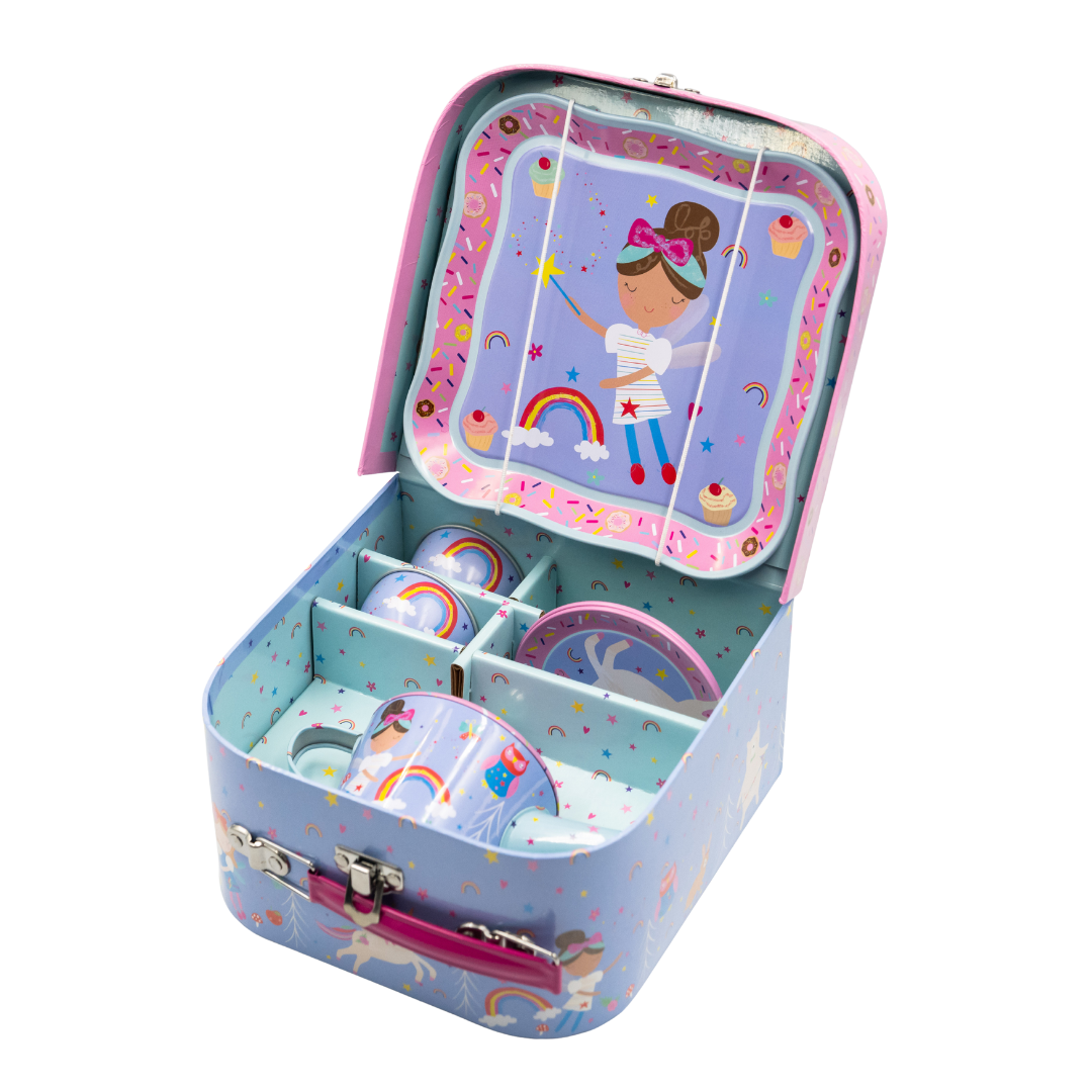 Our Rainbow Fairy 7 Piece Tea Set is the perfect excuse for an afternoon tea party. The brightly coloured box contains illustrations of fairies, unicorns and hula hooping bears. Inside you’ll find one teapot, two cups, two saucers and one tray (a great way to present your afternoon tea to guests!) This is a lovely gift for little ones which will encourage imaginative play or playing with friends. The tea set’s pretty box comes with a carry handle making it easy to take from place-to-place.