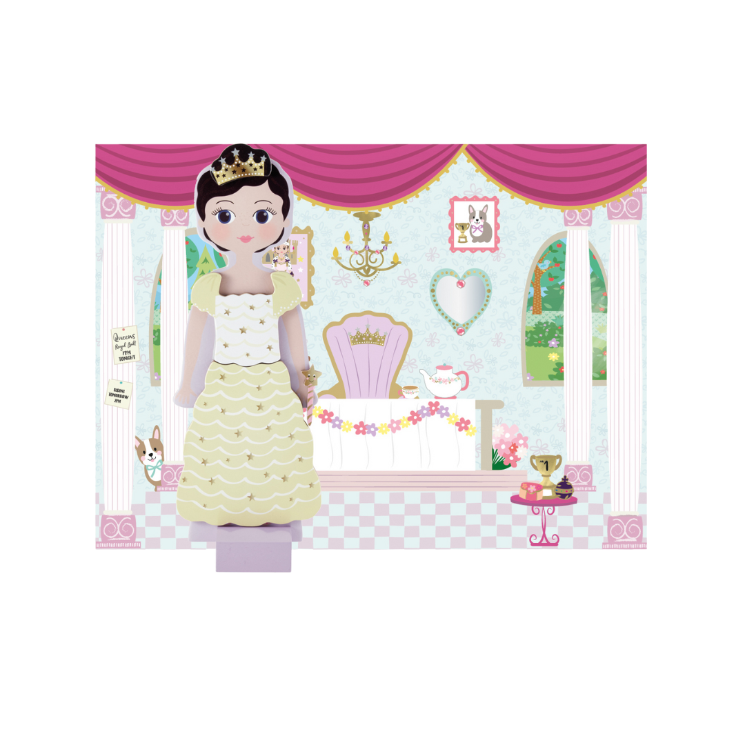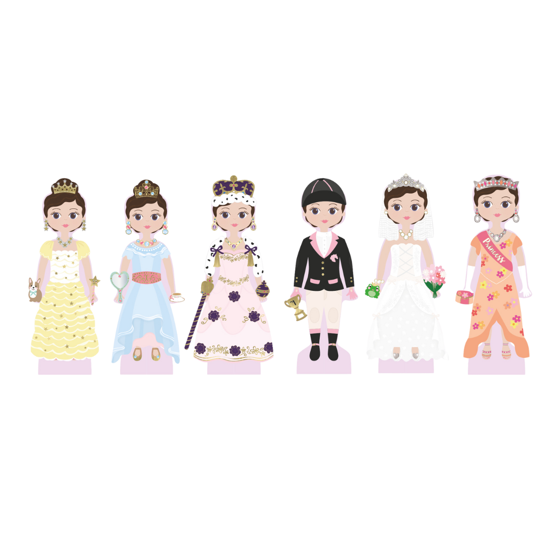 Charlotte loves getting dressed up for events. All the pieces are made of wood and are magnetic. Also supplied in the fabulous display box is a fold out background with the front of the palace scene on one side and her throne on the reverse.
