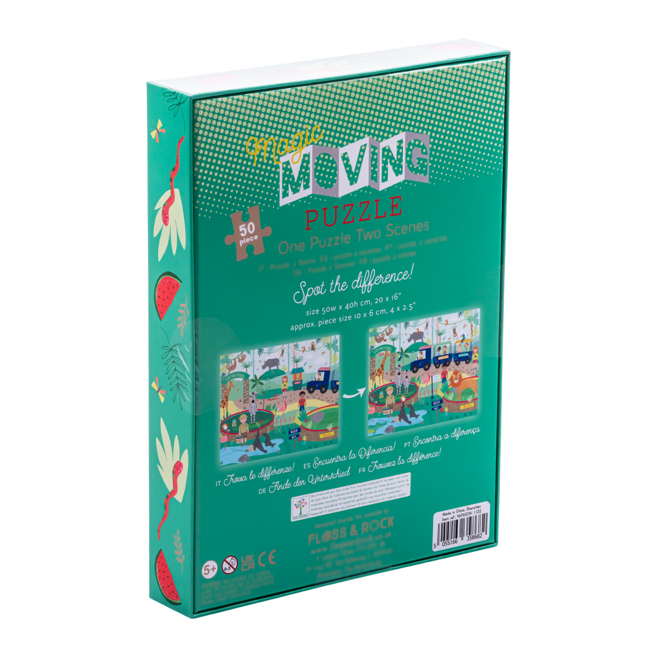 Safari Park Magic Moving Puzzle is so much fun, with a lenticular finish you can watch the animals moving right infront of your eyes. With 50 big puzzle pieces and a fun box with the same effect on the front. You can play spot the difference once you have made the puzzle!